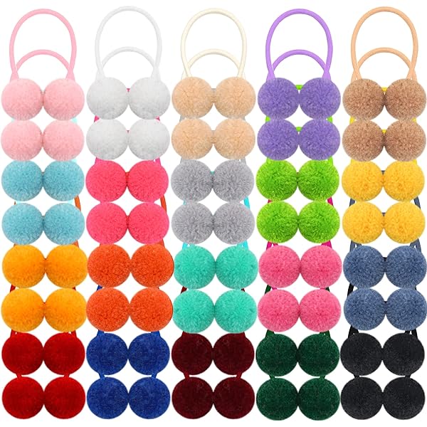 90s Pom Pom Ball Hair Ties For Kids And Women 13 Colors 2 In 36 Pack